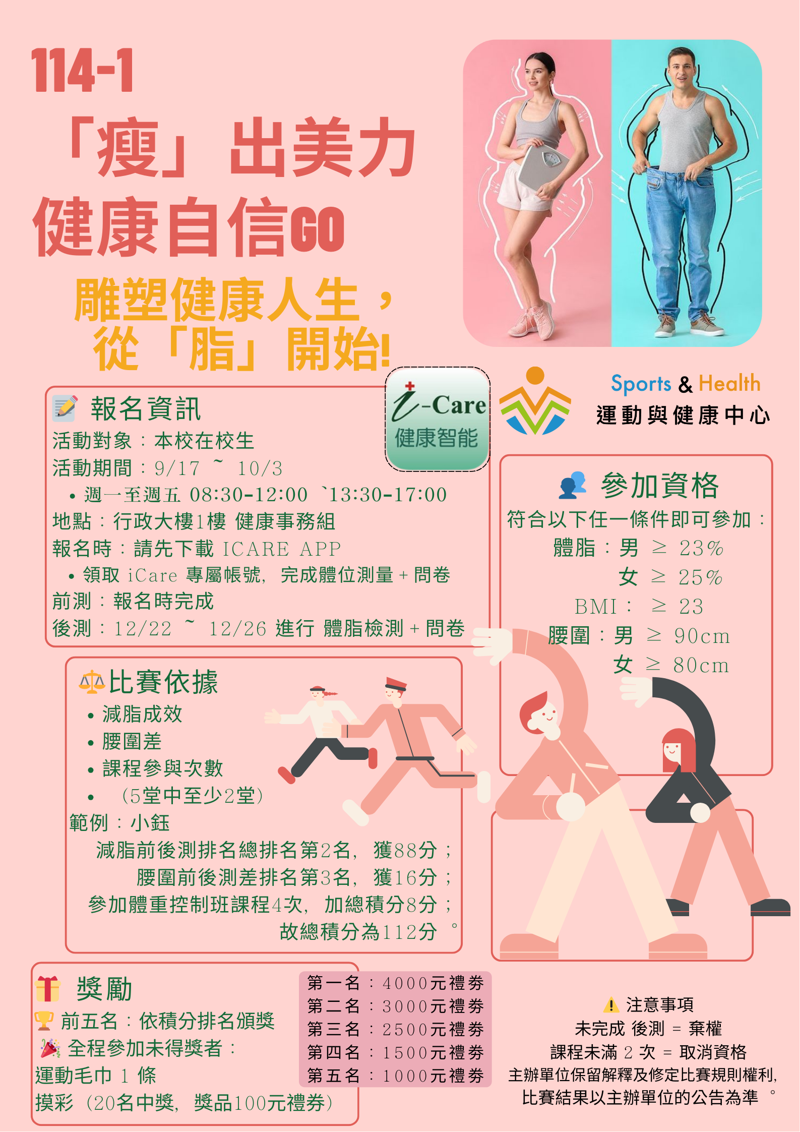 【運健中心】114-1「「瘦」出美力 健康自信GO 健康促進活動來囉~~