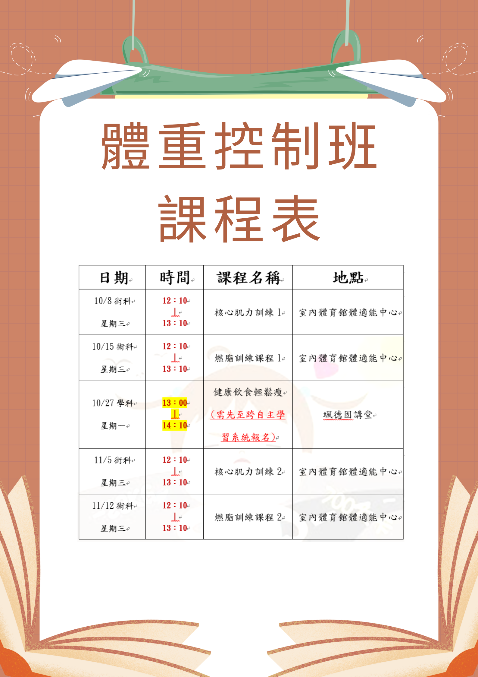 歡迎同學踴躍報名參加,一起健康減脂、展現自信!