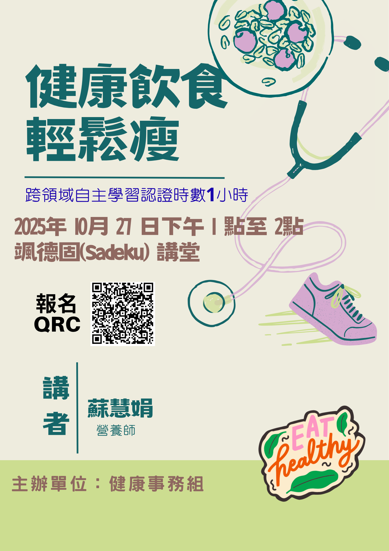 【運健中心】10月27日 下午13:00辦理健康飲食輕鬆瘦 請踴躍報名參加